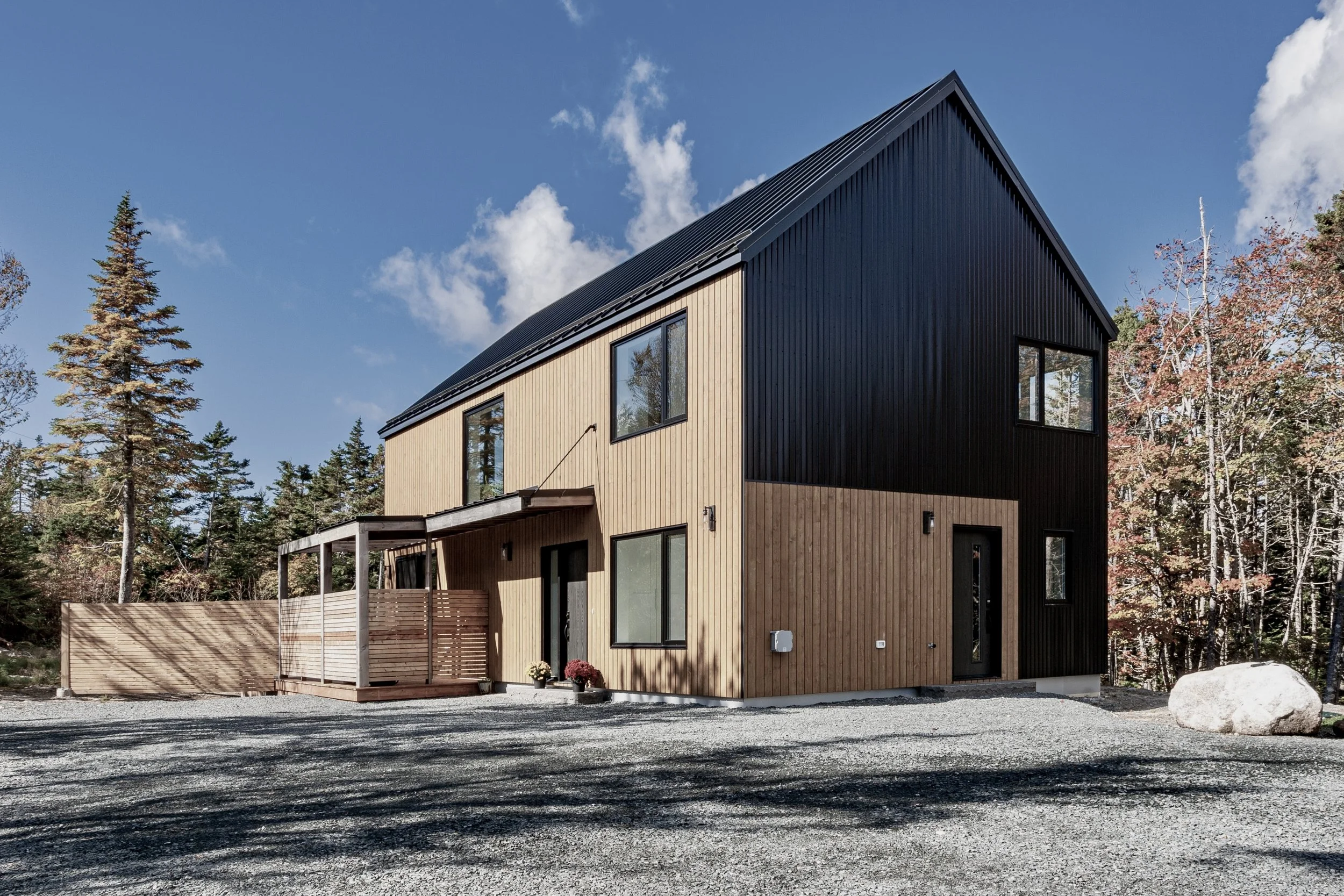 Sambro Creek is a 1,500 square-foot, three-bedroom, two-bath home tucked into a quiet spot in the woods with distant ocean views.