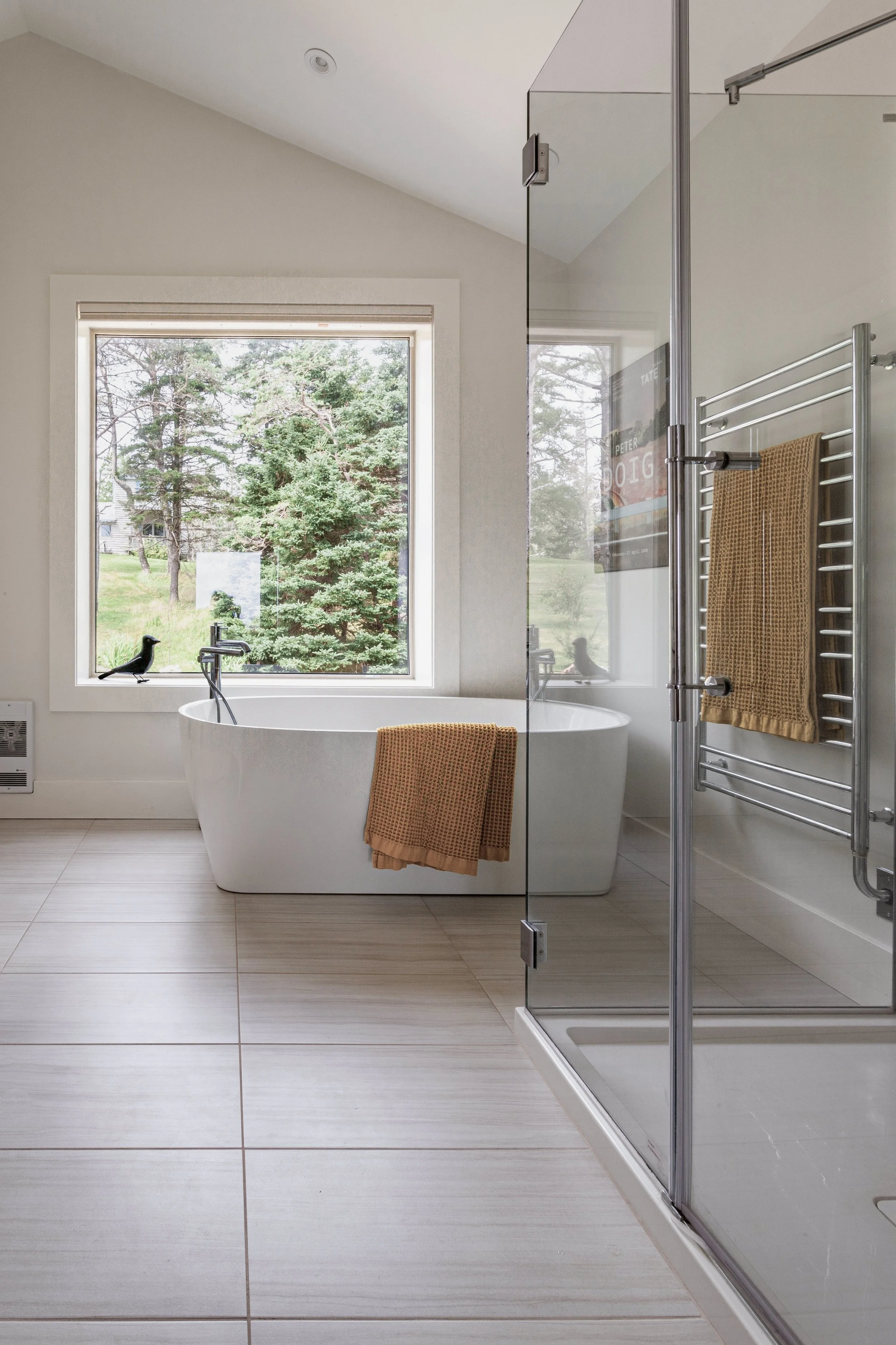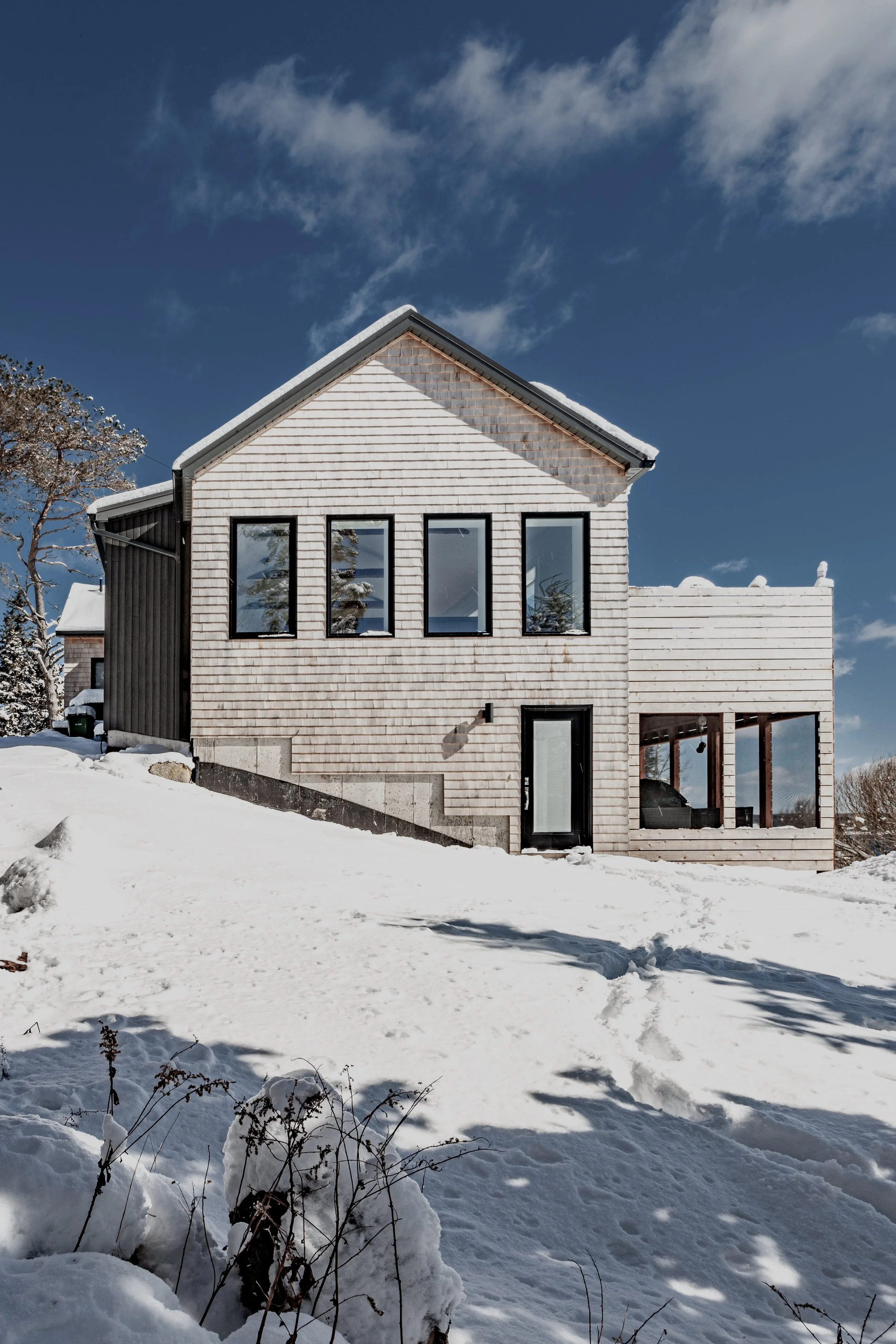 On the exterior, the homeowners wanted the home to fit the natural surroundings as though it had always been there. The cedar shingles and metal roof are part of the traditional Nova Scotia cottage aesthetic. We also selected them for durability, to withstand the heavy winds and winter storms of the North Atlantic, and to be low maintenance over the years.
